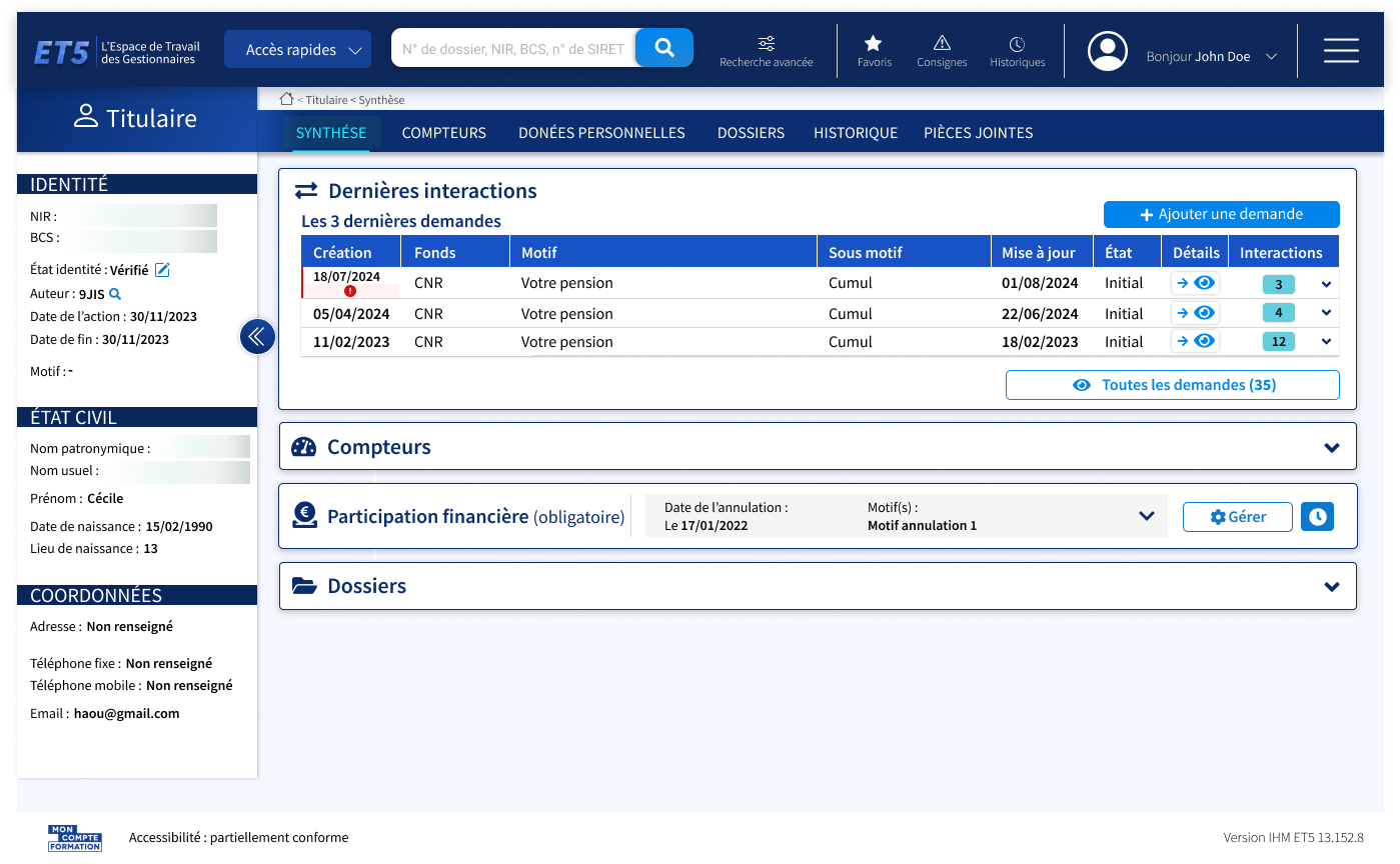 Mission de lead UX / UI sur l'outillage métier ET5, des gestionnaires de mon compte formation. Dans un contexte d'agilité à grande échelle