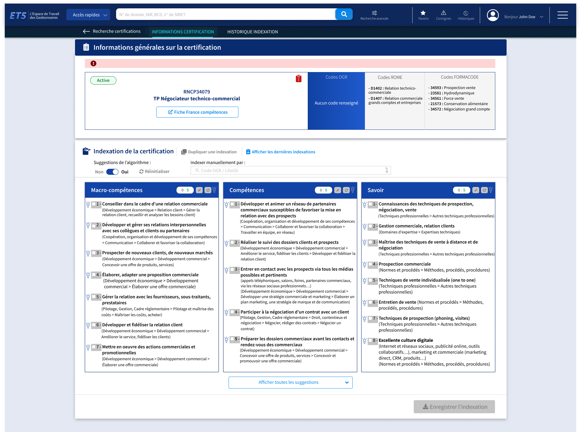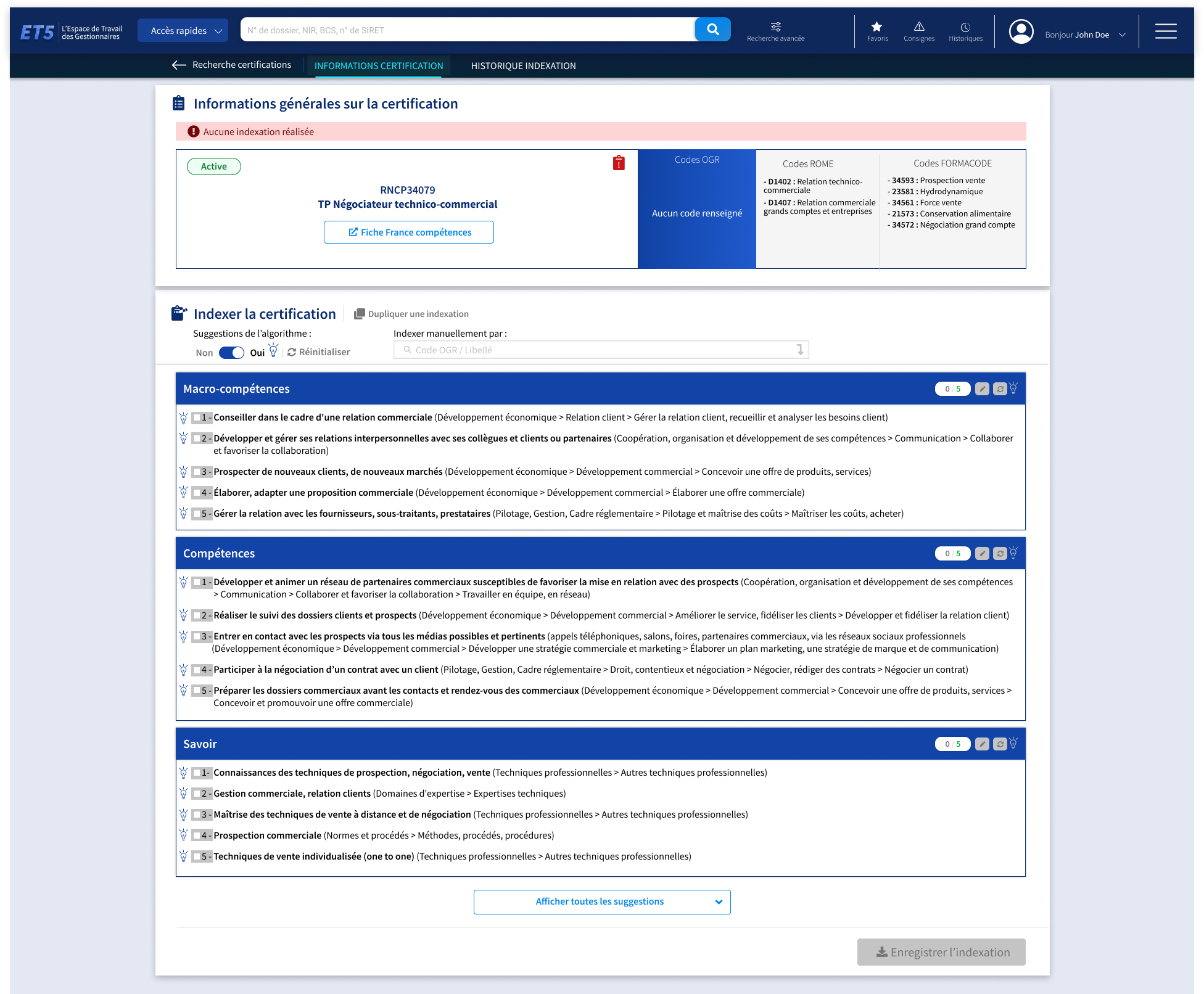 Système d'indexation des formations